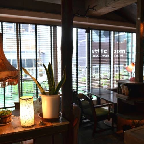 屋根裏部屋カフェで落ち着いた時間を過ごす